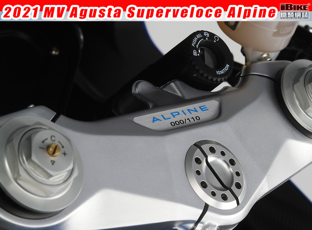 3-cylinder – Euro 5 Power: 147 hp at 13.000 rpm Top speed: 240 km/h Dry weight: 173 kg Compression ratio: 13.3:1 DETAILING Color: #alpine Blue/Ago