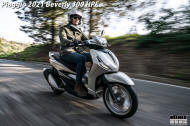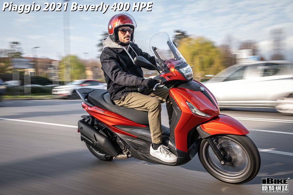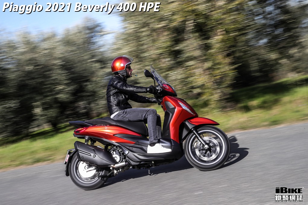 新車分為Beverly 300 HPE和Beverly 400S HPE兩款,產品定位是都市代步和長距離交通功具。如果想要雙缸綿羊的穩定性,但又不想要它的重量、價錢和油耗的話,選擇Beverly大轆綿羊便可同時享有以上優點。2021年對Beverly來說是20週年紀念的大日子,所以車頭完全經過了重新設計。