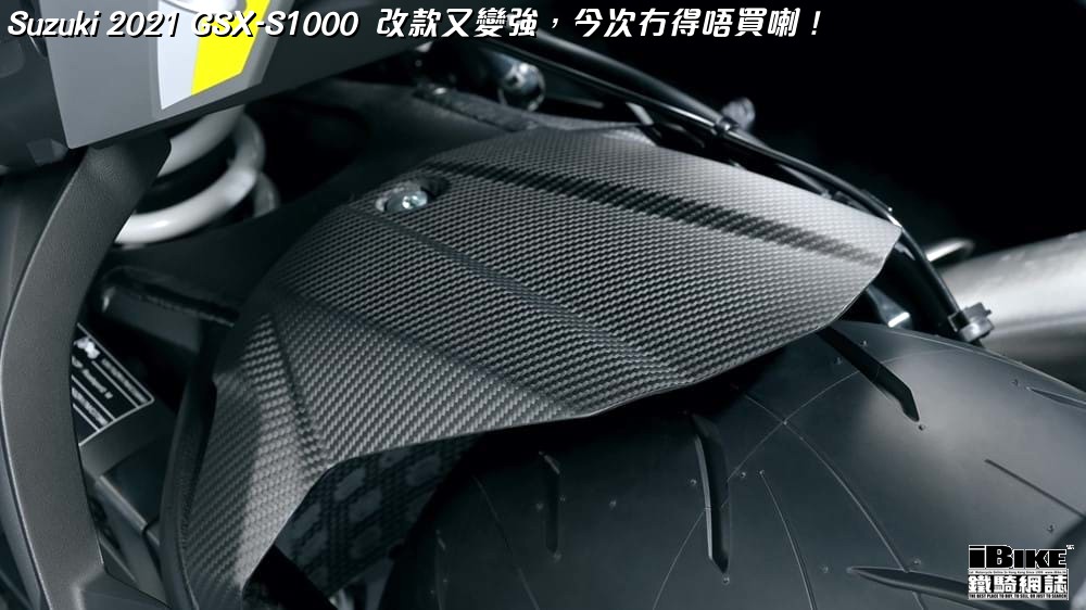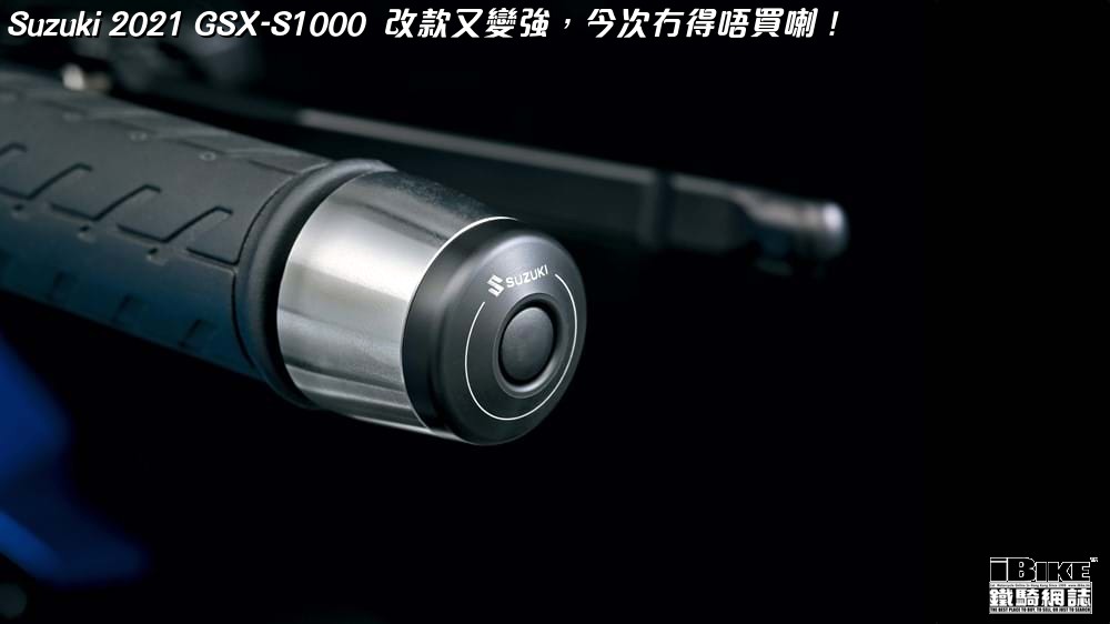 雙向快速轉波和自動補油,是2021 GSX-S1000的標準裝備。轉向把手的闊度也輕微增加了23mm,並向騎士拉近了20mm。副車架來自2016 GSX-R1000,座高也由810mm下降至805mm。整體改動令操控更慳力,慢車反應更靈活。