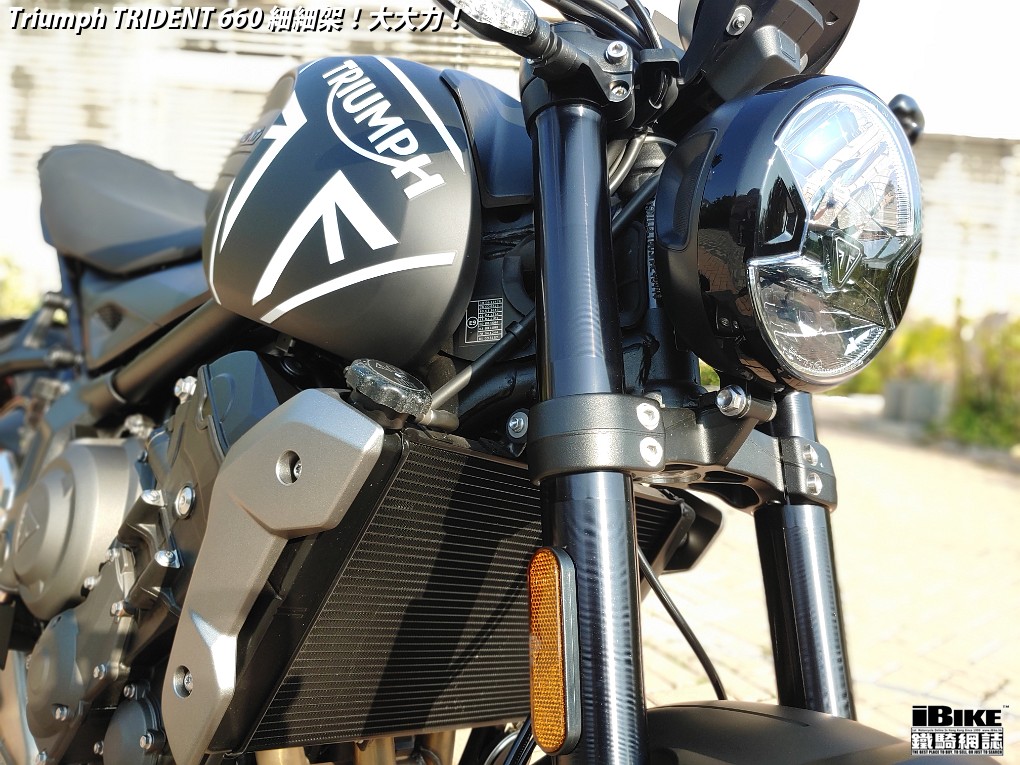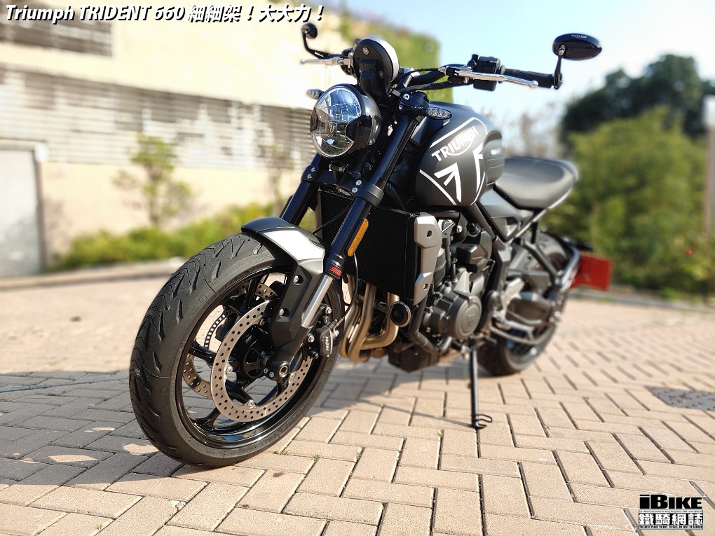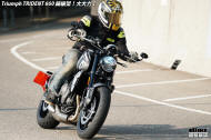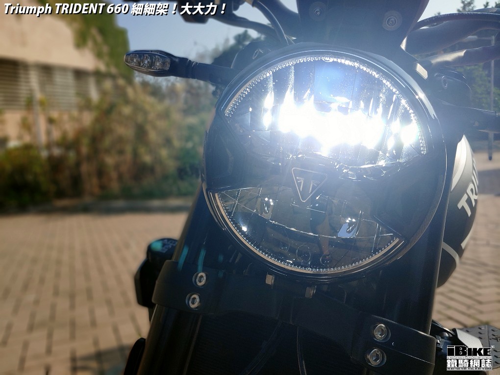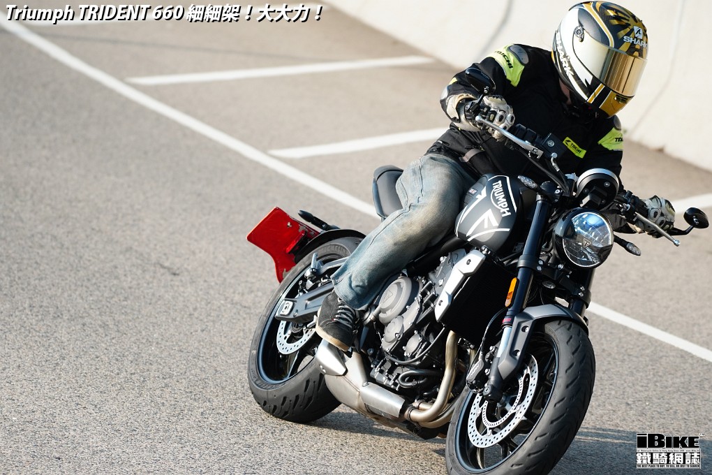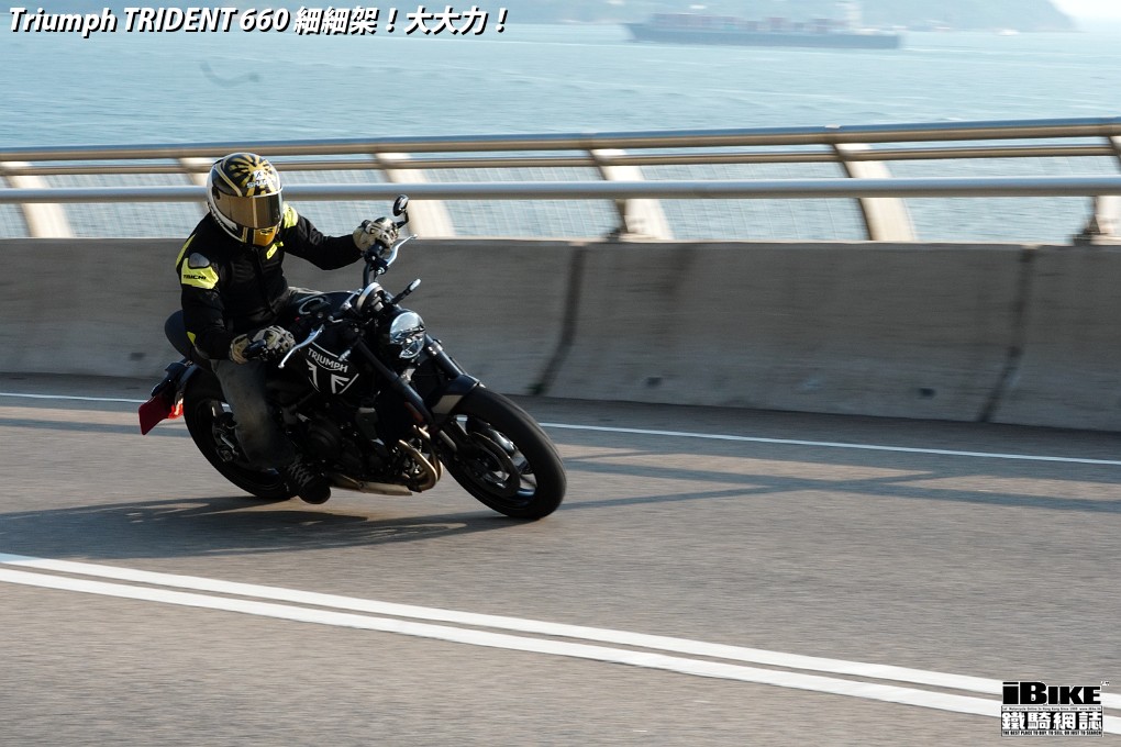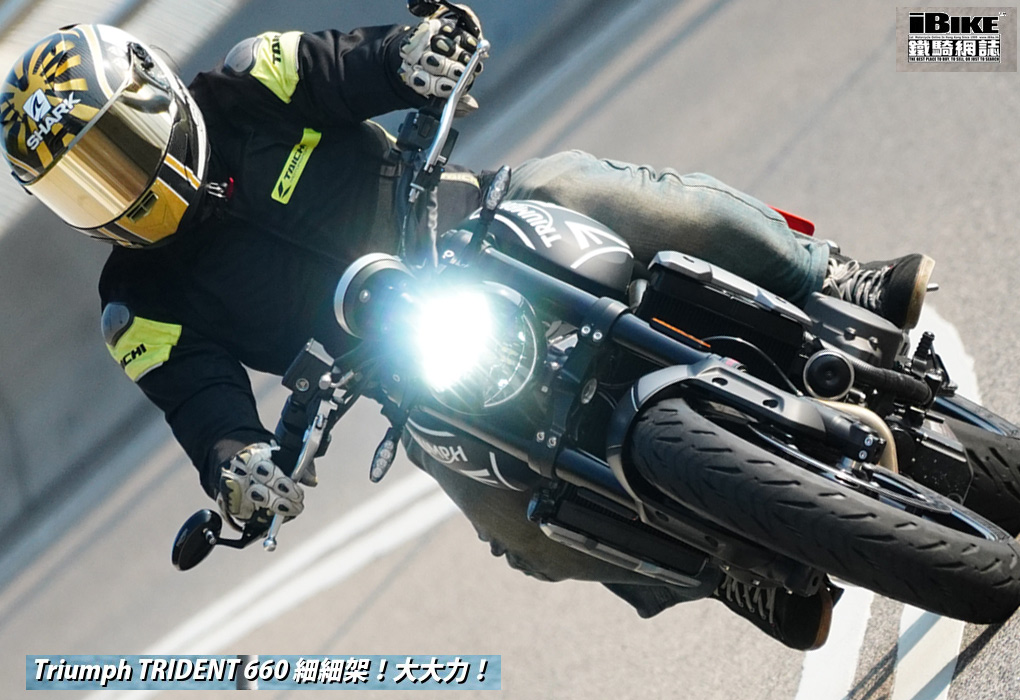 講左咁耐,都係想帶出Trident 660著車時那一份即時和平順感。一撻即著,就像直四機器般車身沒有震動感覺。看著仿古LCD圓錶也可以作多種模式顯示,心中高興。相比起同門兄弟Street Triple 675,Trident 660少了一份神經質,明顯較淡定平和,舒適度也更高。在rain mode和road mode之間來回比較,發現rain mode在4000rpm以上時表現較柔和,而road mode則樂意發力再上。