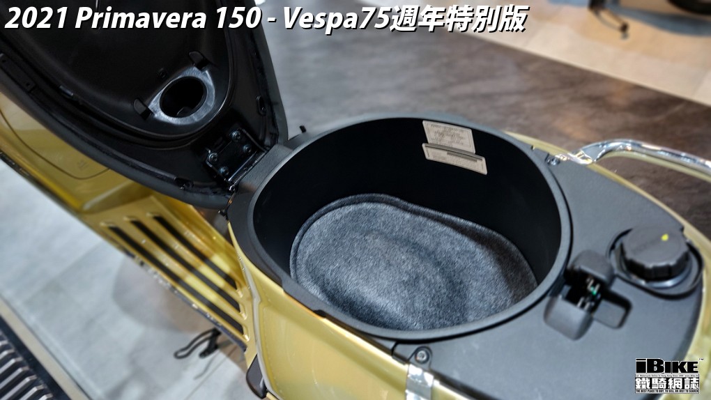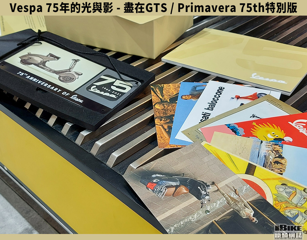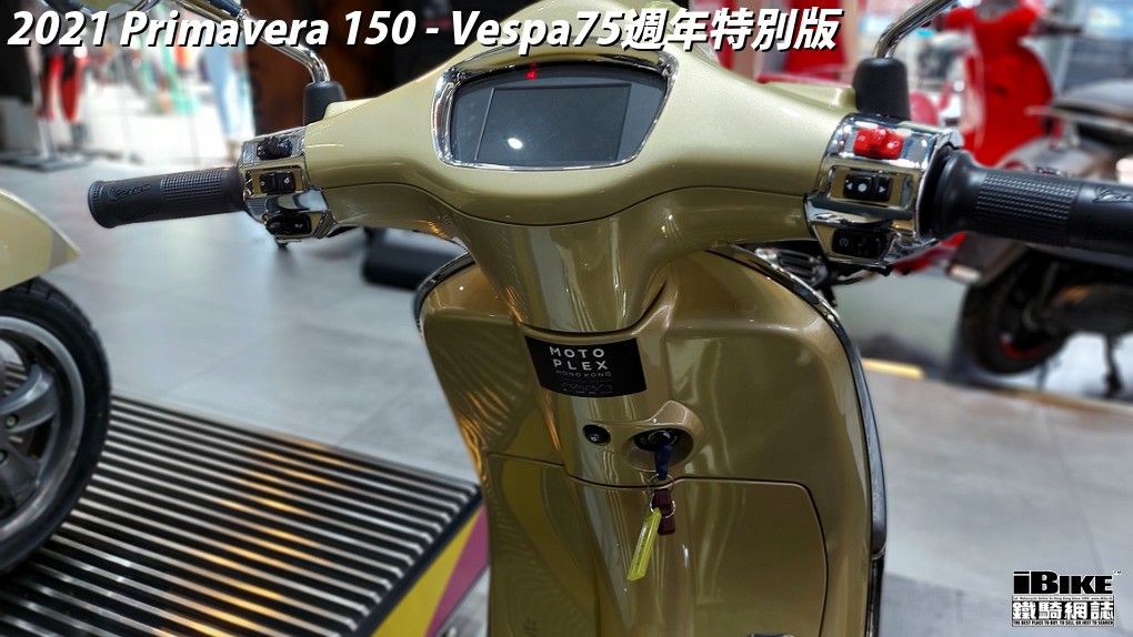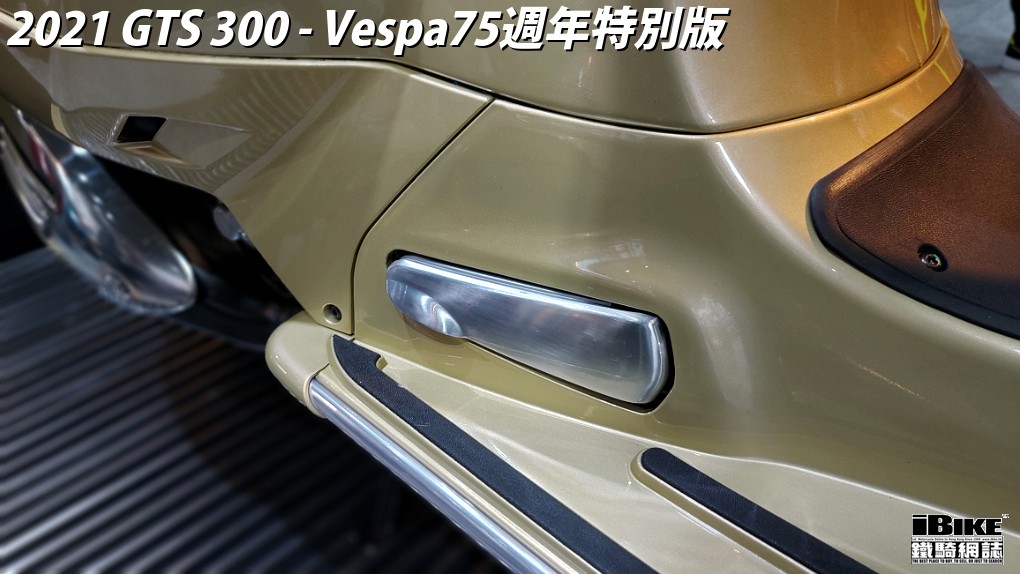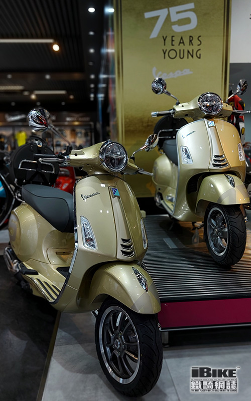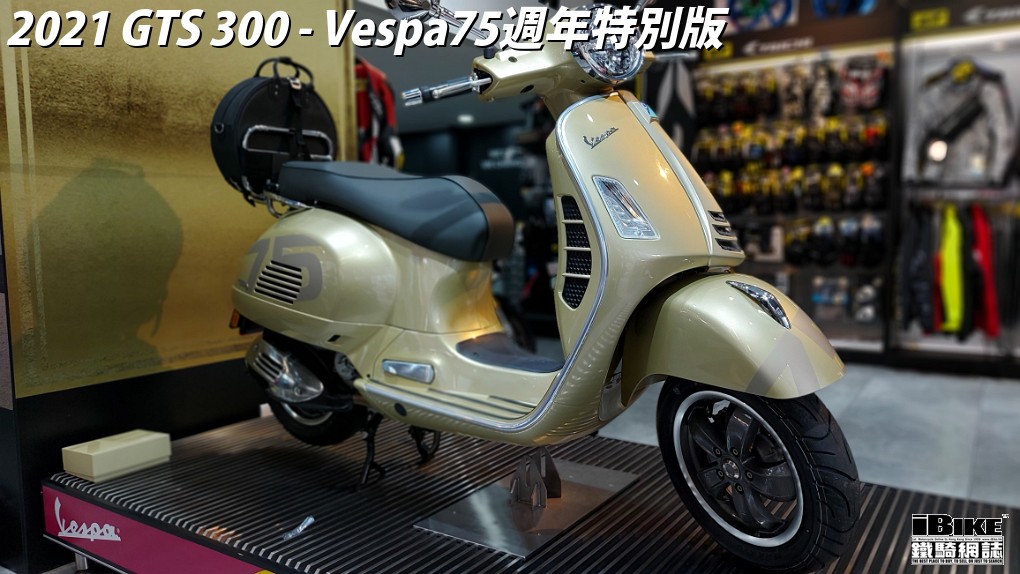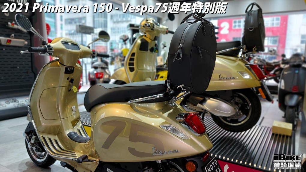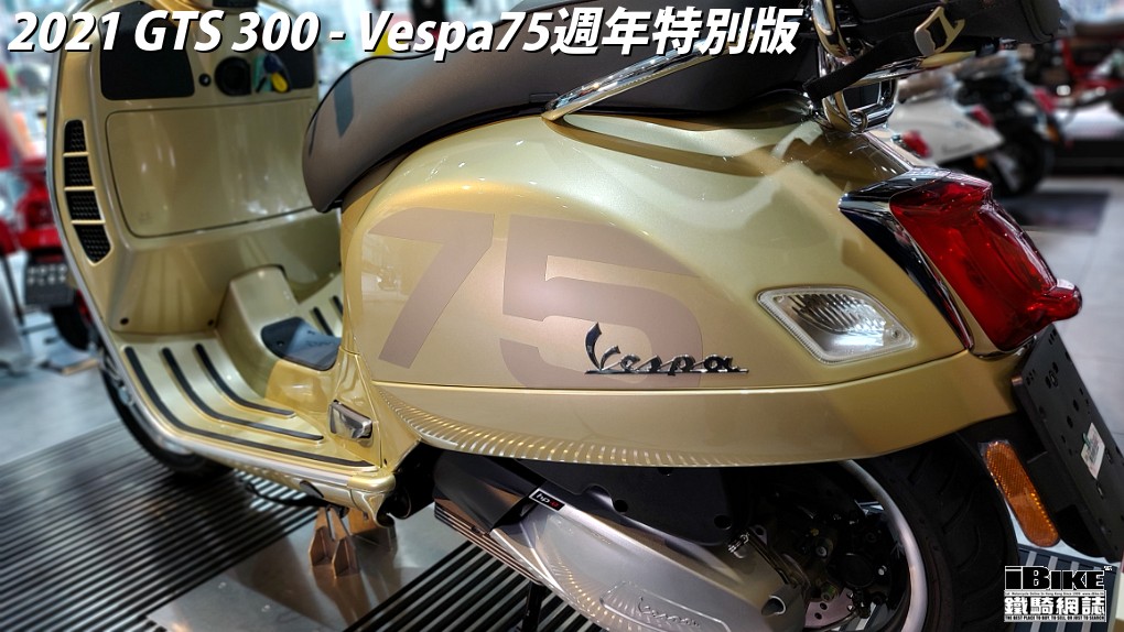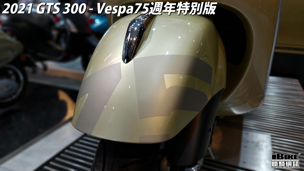 兩款75週年特別版只限在2021年發售,分別是Vespa GTS 125/300和Primavera 50/125/150。來港型號應是GTS 300和Primavera 150。像所有Vespa特別版一樣,該系列在護腿板後面有一塊銘牌。