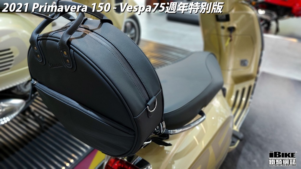如何計算出Vespa 75週年呢?原來是由1946年4月23日(專利申請日)到2021年4月22日。廠方為慶祝今次盛事,特別推出兩款75週年特別版。特別版有專用車色,新的座墊。電鍍行李架上也有專用皮包。