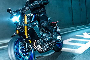 MT-09 SP獨有的受R1M影響的全新Icon Performance顏色在油箱和風道上採用藍色/黑色多色調油漆方案,使這款頂級Hyper