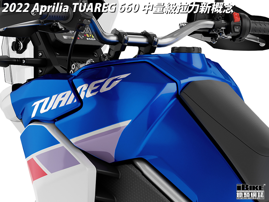 作為一臺中量級車種,輕量化是必需的。2022 aprilia Tuareg 660乾重只有187kg,為同級對手創造輕量化新基準。新車配備18升油缸,頭尾輪圈直徑分別是21吋和18吋,為長途旅程提供準備。