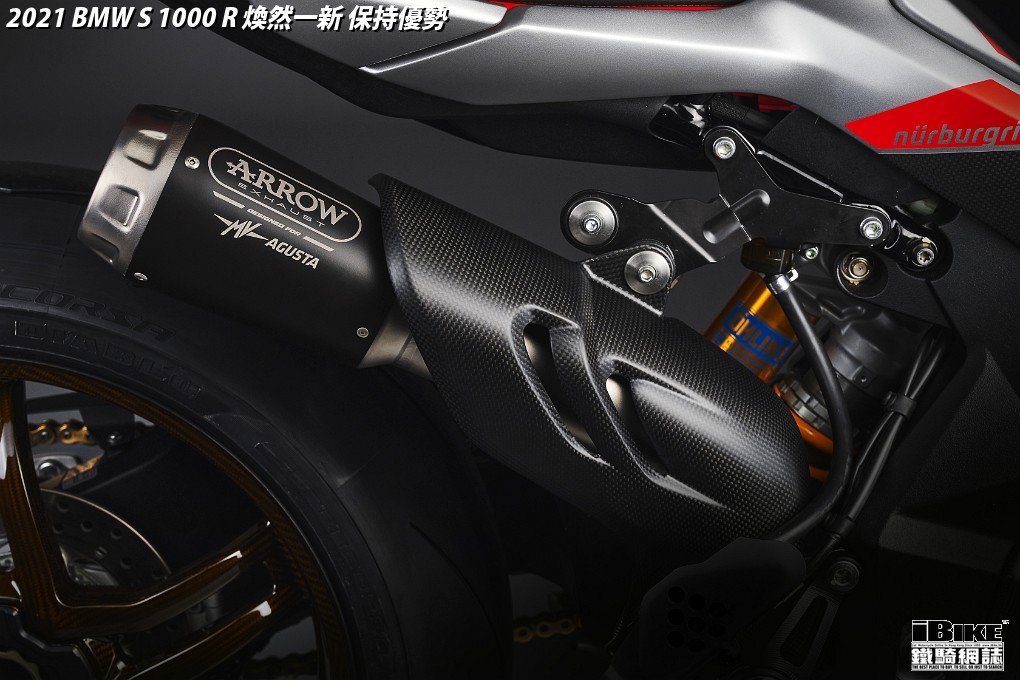 Arrow鈦合金排氣管由四出四改為四出一設計,不但節省了消音器的重量,扭力也會較強。紐柏林地獄版的銀色車色、獨有車花和限量號碼牌,都是身價的保證。