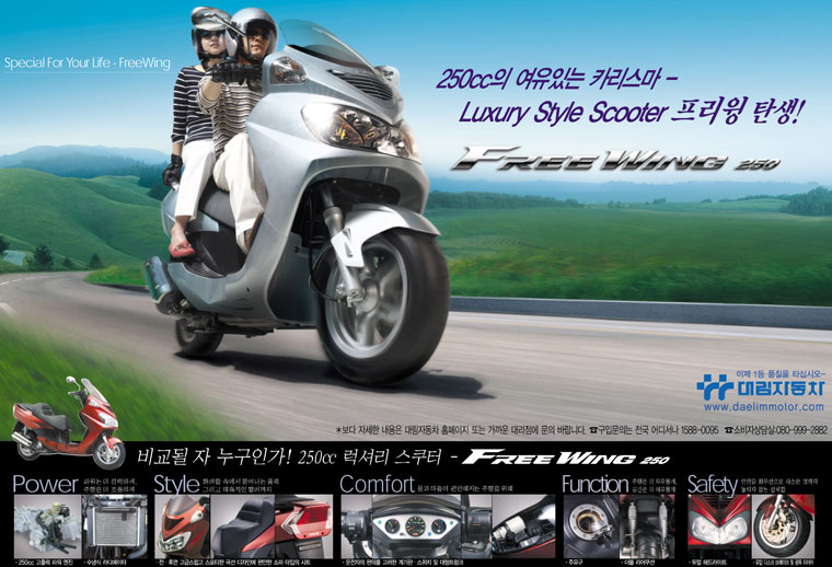 韓國電單車第一大廠Daelim大林,在2004年推出最新力作 - Free Wing S2-250,據代理表示,新車將於十月份抵港。早排代理S&S電單車中心一時高興,竟然搞左個競猜遊戲出來,答對三條問題又抽中的幸運兒,有機會晉身進入最後一輪的幸運匙抽獎,獎品竟然係S2-250!送車送到250cc,認真大手筆。