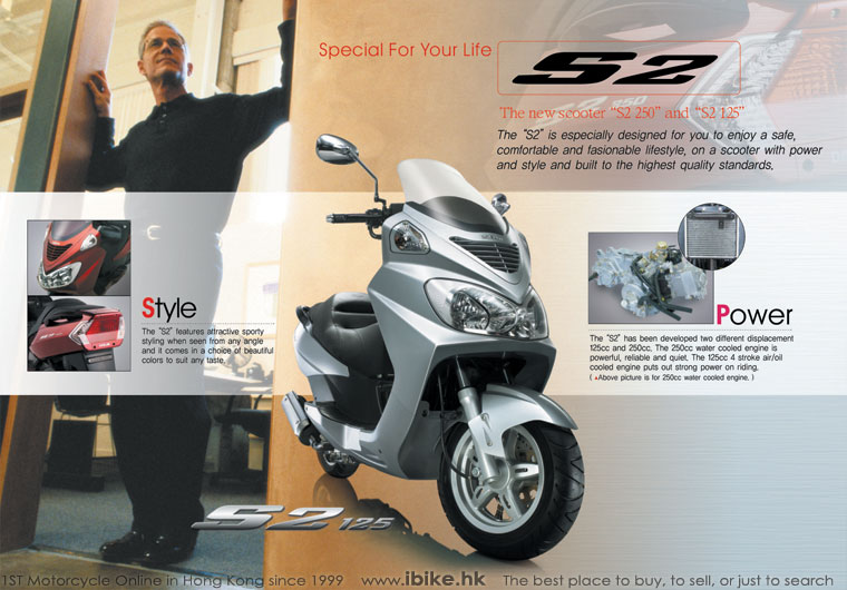 S2-250除了內銷韓國本土市場外還放眼外銷市場。主要目標是歐陸各國。所以大家見到的產品說明書,都是起用紅鬚綠眼的模特兒。驟眼看還以為是Piaggio的作品呢:) |