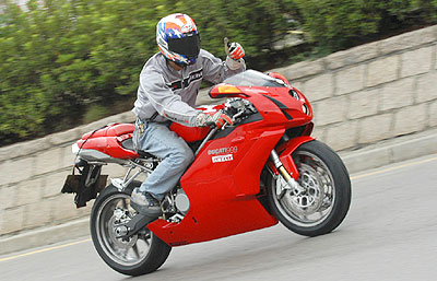但經過實地駕駛後,我認為上述的改動幾乎不會察覺。要讓999起頭wheelie或收車stoppie,還是這麼容易。 |