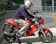 因車身太小,乘騎空間非常狹窄。膝蓋頂著車架啡呤,坐姿前傾,因腰長關係,下巴像放在錶板上,感覺就像坐在前輪上駕駛般過敏。容易駕駛之餘,並不舒適。需要時間適應方能放心劈掛。 |
