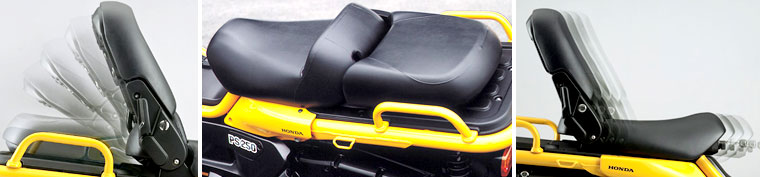 當利用司機座位右旁的操縱桿,把長座位的後半部份掀起時,原本是後座的部份,馬上變成了駕駛者的豪華靠背。座位還可以前後調校,實在好玩。這設計以往在BMW的R1200C身上見過,但PS250把這設計玩得更盡,掀起後座位的PS250,搖身一變成為高載貨容量的多用途城市小車。
