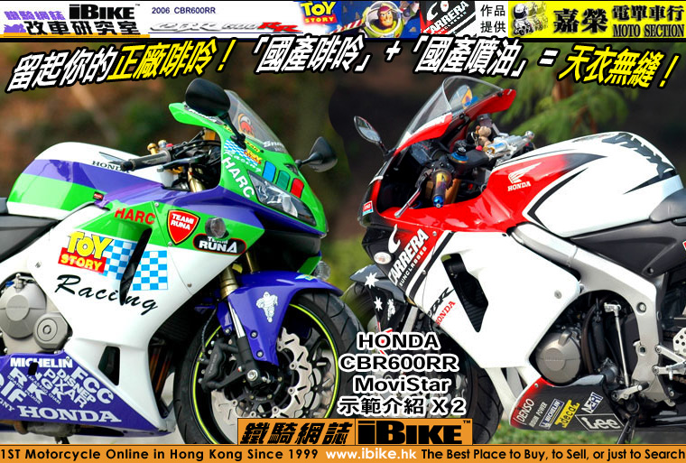 咦!上面兩架咪係HONDA CBR600RR?重要係06年銀色車架的MoviStar特別版喎!點解會換左呢d咁得意o既拉花呢?原來兩部CBR600RR MoviStar特別版的車主都收起左全套原廠啡呤珍藏,換上國產啡呤,換下Feel費時係街度撞口撞面都係果幾隻花咁話喎。咁又係,原廠啡呤價錢昂貴,如有損壞咪話唔心痛。相反換上After Market的啡呤後,換左一套新衫,心理壓力又細左,醒!。