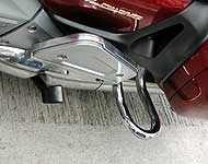 車尾方面,選用VFR的Pro -Arm單搖臂,換胎唔駛拆箱。尾單筒避震更是用電子調較預載,係左膝位置的錶板調較,更有兩組記憶設定,方便車主在單騎和雙騎時馬上作出調較。