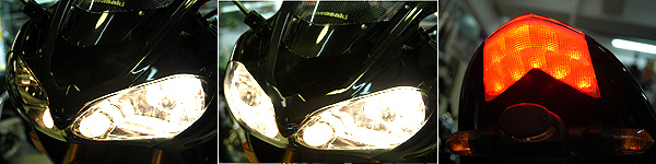 外型方面,ZX-10R的車頭風阻面積比ZX-6R更小。尾燈採用高置式LED設計,提高可觀和安全性。 |