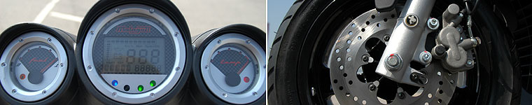 S200相差無幾,但卻改用更粗壯的輪胎來增加抓地力。前胎已經採用別人是尾胎規格的130/70-13,尾胎則是140/60-13,足以和新款250甚至400級綿羊媲美。而座高更由以往的820mm減低至790mm,落腳位也經過修飾,相信更能迎合東方騎士的要求。 |