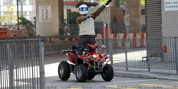 在馬路上駕駛ATV實在太好玩。看下圖Eddy試騎X-Rider150A時,身後的士司機懷著驚訝的目光離遠停車觀察觀察實在好笑。 |