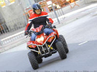 其實駕駛ATV需要一點時間適應。首先要習慣油門是按下去而不是電單車的扭油筒,其次是轉彎時把手的操控。初初轉彎時會覺得有點表現呆滯,但其後切彎轉向的感覺相當強烈,控制不當的話準會手忙腳亂。 |