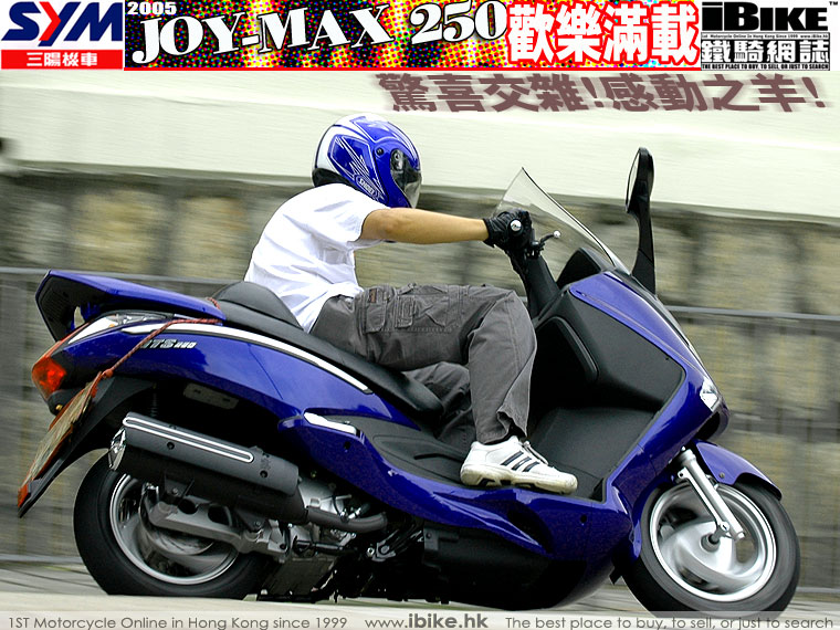725mm座高 + 174kg乾重 + 1495mm軸距,都是十分容易應付的數字。著車時享受完錶板指針的舞蹈後,便輪感受單汽缸活塞在怠轉的結實動作。老實說,Joy-Max 250在怠轉時的車身震動,比日本綿羊為大。震動感覺隨著引擎轉數上升而減退。新車的加速力達到了同級應有的表現,速度提升時表現順滑線性, 相當不俗。而 一對前置後鏡安裝在車頭啡呤之上,視野比起安裝在把手上的後鏡,視野更廣闊盲區更小,甚有房車味。