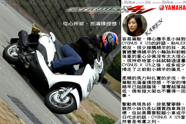 頭尾燈的用料和上佳的操控令人很難對著CYGNUS X 說「NO」!執筆時代理還未公佈售價,如果價錢合理的話相信會是另一熱賣名駒。