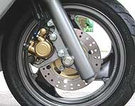 Cygnus 125則成功地討好了兩邊,前輪用12吋輪圈,帶來較穩定的操控感,後輪則仍沿用10吋輪圈,不失結實的起步力量。證據是當日實地行車時因未有空細看規格表,心想不能對125cc抱有什麼祈望,但起步的結實感超出預算,有點驚喜。細磨彎路,前擔過敏度亦沒有想像中高,尾避震也不算軟,至此我不能不承認事前太低估125綿羊的駕駛樂趣。 |
