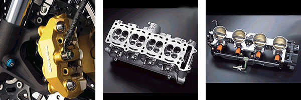 引擎活瓣採用鈦合金製作。汽缸之間像GSX-R1000般設有疏氣孔平衡曲軸在高轉時所承受的壓力,有利提高轉數和減少動力流失。盤頂內部的形狀輕微降低,減少燃燒室的空間,令壓縮比增加。 |