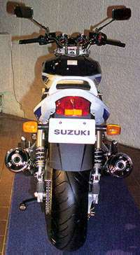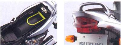 單件後置式乘客扶手似乎是鈴木的新車主流。在乘客角度而言無疑是更為易用,但雙邊式扶手具有不礙加裝尾箱高度,方便扶車起大架和綁繩載貨的優點。 |