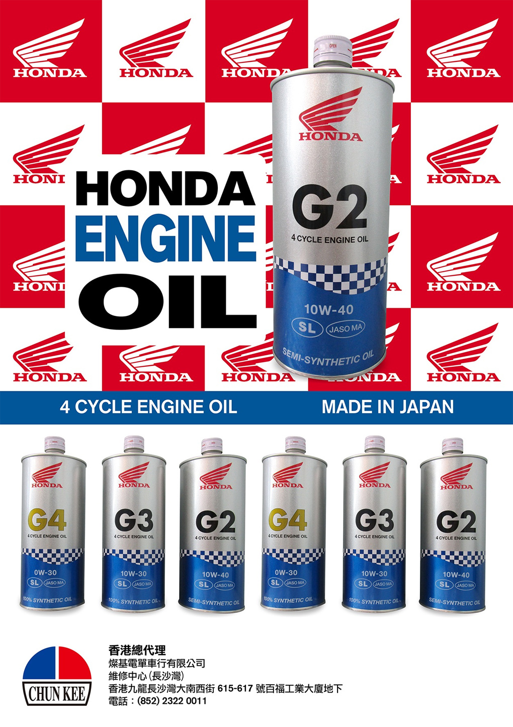4 CYCLE ENGINE OIL正式登陸香港發售,除獨有的香港版本罐身式樣及型號條碼外,其配方亦是專為香港市場而設,更加適合香港的氣候之餘亦更貼合香港一般的行車狀況需要。能確保你的座駕引擎發揮出最佳的性能及耐用性。