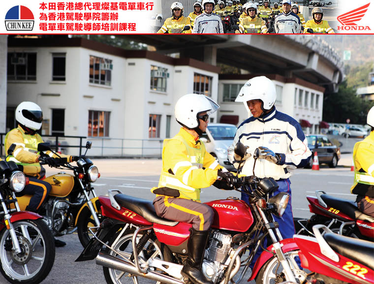 | 本田香港總代理燦基電單車行為香港駕駛學院籌辦的電單車駕駛導師的培訓課程於2011年1月15至19日舉行。此次特別邀請日本本田駕駛訓練學校的兩位資深導師矢島拓先生 (Taku Yajima)及山下広先生