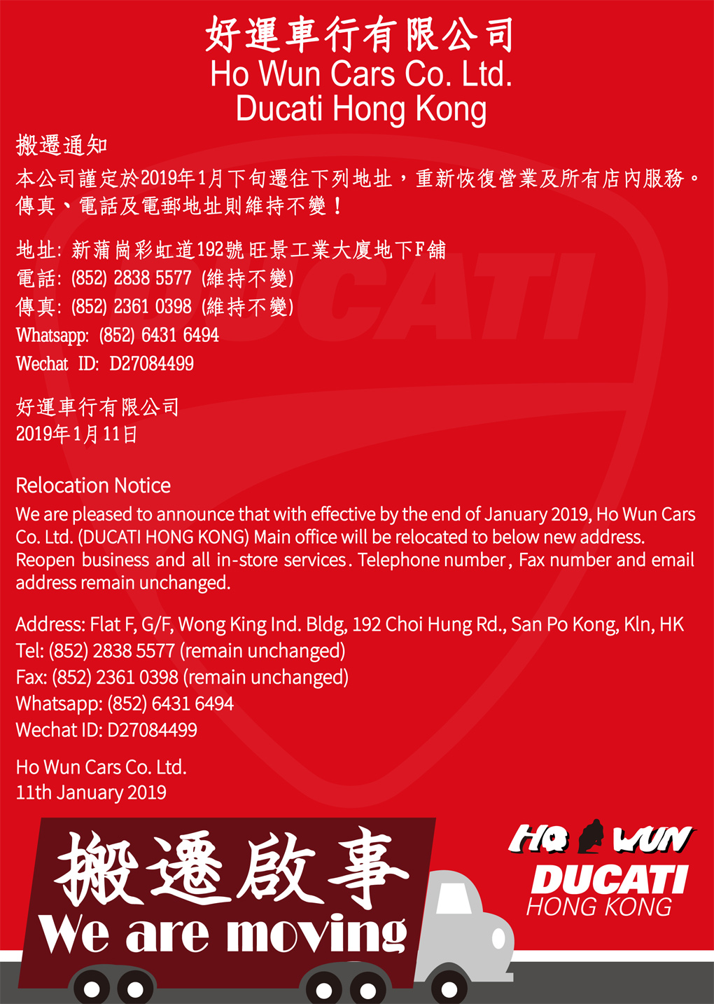 Ducati Hong Kong Ltd 杜卡迪香港有限公司 - 車行情報