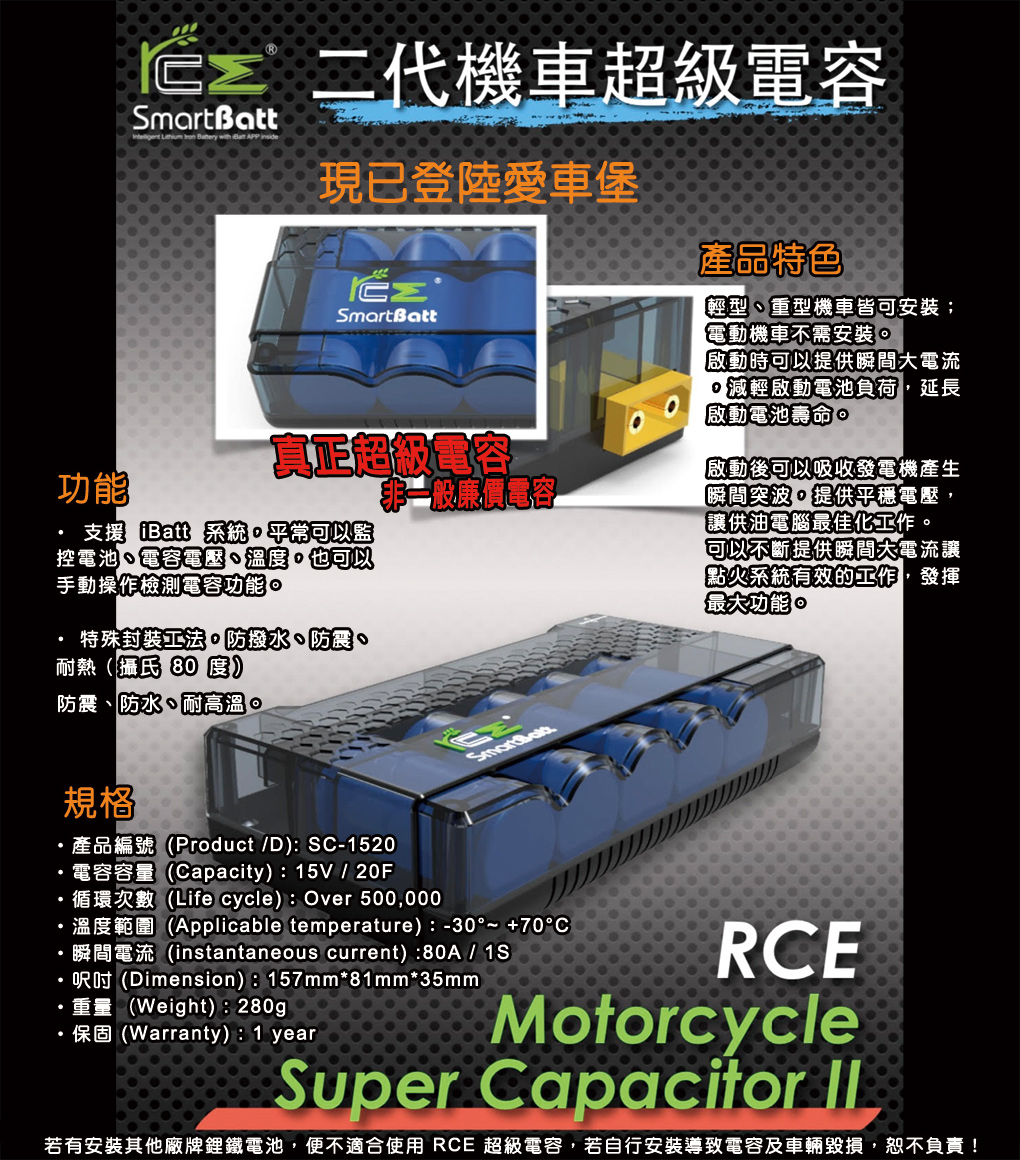| RCE 超級電容 (電單車和私家車超級電容) |