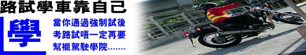 當然自己到運輸處自行報考電單車路試的程序比較煩複(自行報考電單車路試,租考試之電單車或購買有學保之電單車作考試之用...),但兩者相差之時間約2至3個月.所以我相信自行報考路試法是另一條較快捷的方法把!!
