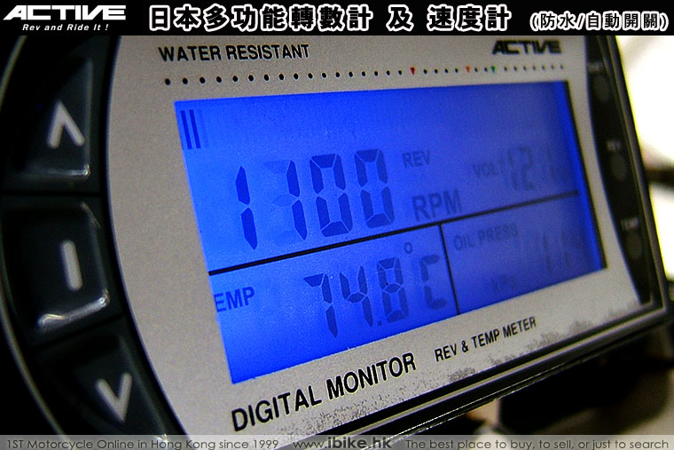 相信綿羊車主和越野電單車的車主們,都會對Active的轉數計及溫度計感到有興趣。而即使裝有轉數錶的街車,也可以利用Active Digital Meter知道油溫、水溫和電壓等資料。不過要留意一點是,原來油壓並不是每一款電單車都能感應到,通常都會是較重型的電單車,才能感應到正確的機油壓力。