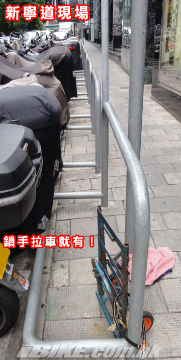 香港電單車失竊數字一向高企,以大部份失竊案件都發生在路旁被整臺抬上貨車運走。有見及此,自04年起便有熱心人提倡電單車泊位增設防盜地錨或欄桿,希望透過正確鎖車方法,防此電單車被賊人整臺抬走。 |