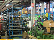 在工廠裡,經過長長的一排又一排排氣組裝配件高架,—偌大的廠房存放著數不清的配件和貨品。單是新產品開發部已經比我們以前參觀過的很多排氣生產工廠規模大得多,