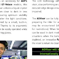 Currently available as an accessory for AGV’s Pista GP, Corsa, and GT-Veloce models, this amazingly practical visor utilizes a liquid-crystal display to change from clear to dark in less than one second, ensuring optimum visibility for the wearer no matter the light conditions ...