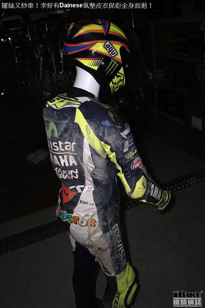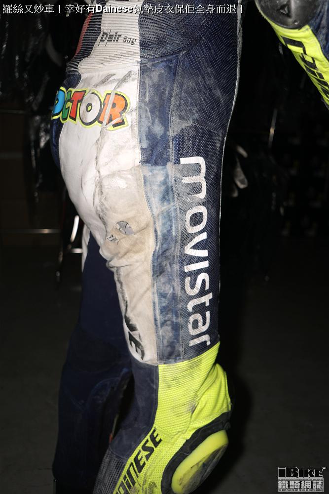 | 前世界冠軍電單車賽車手羅絲在2015年9月測試Michelin新胎時發生low side側滑意外,他身上所穿的Dainese氣墊皮衣D-air Racing leather suit充份發揮保護作用,羅絲沒有大礙,科技救人,又一見證! |