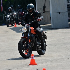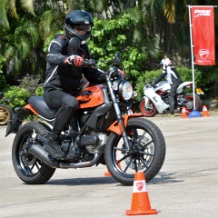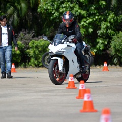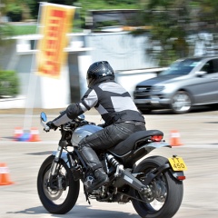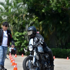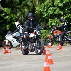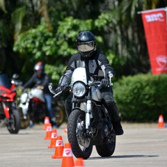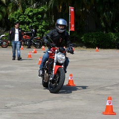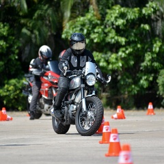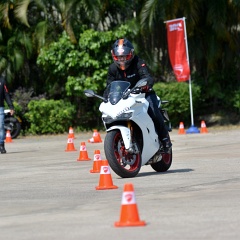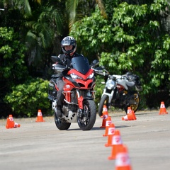 今次香港DRE活動,除了教導學員在急煞時如何使用手腕及手指的力度分配之外,也講解視線運用及身體的協調。今天總共有16位學員參加DRE課程,當中有資深學員也有新手。導師按照學員技術和車款分成兩組,可以更貼切地作出指導,令學員在短時間學到所有課程。 雖然跑車及Cafe Racer車款較難以S字型穿過雪糕筒,但經過教導後,學員便馬上掌握到技巧。另一方面,Multistrada 1200在急煞方面亦都不容易。因為車身較重及座高的關係,初心學員有時會難以平衡。但經過Simon Sir教導之後,學員有明顯進步和分別。 |