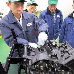 據燦基莫先生表示,燦基維修部早已接受過相關訓練。今次再到來日,主要是協助機電署的代表受訓。雖然本田有翻譯在場,但在專屬名詞和關鍵性的翻譯,仍需要燦基的幫忙。莫生表示今次訓練非常成功,原因是機電署的五位要員都擁有實戰能力,課程需要學員摺起衫袖落手落腳,完全冇問題。由簡單至調較引擎閥門間隙,診斷故障碼,到打散成副引擎、波箱,到重新組嵌還原都一講就明,極快上手完全冇問題。 |