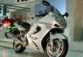 ZZ-R1200為川崎重工的重頭戲。連Ram-Air的計算馬力高達163ps!開發理念是把運動和長途駕駛重新組合,帶出刺激的旅程感受。著重於全轉速區域表現的ZZ-R1200,無論中低速漫遊或高速奔馳,都可勝任有餘。劃新的外型也令車迷重拾對ZZ-R系列的注意。(觀看以往報導)