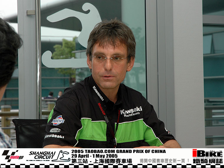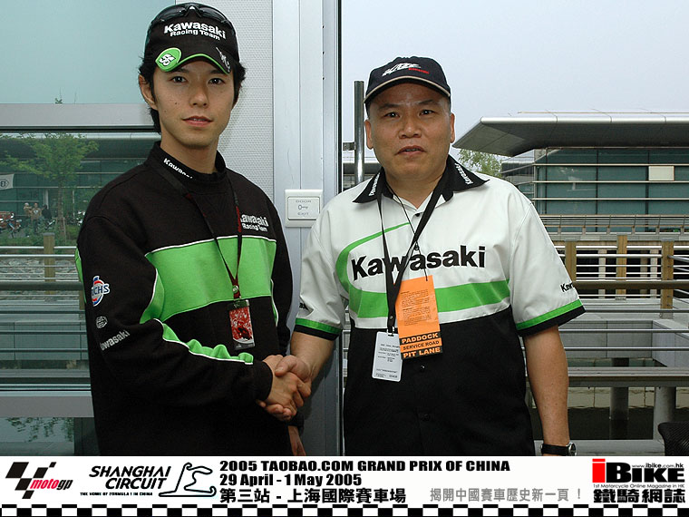 中野真矢在Kawasaki Racing Team的傳媒主任Mr. Ian Wheeler陪同下和我們見面,在適當場合補充一下車隊希望傳達的訊息。