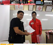 由於技師整完車後都要試車以確定車輛正常,所以在課程最後一天,都安排各學員試車親嘗MTS1200。最後當然會有證書頒發予考試合格的學員啦!Ducati HK兩位技師都順利適過課程要求,Yes!