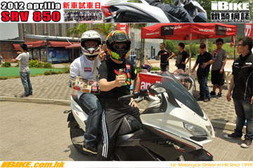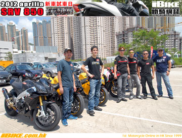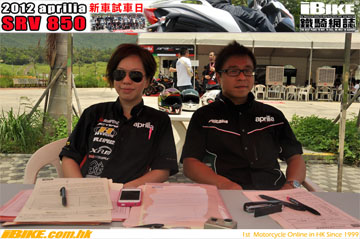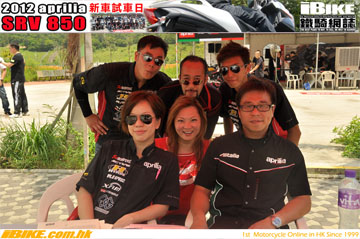 aprilia總代理亞林電單車行有限公司在2012年8月19日假座將軍澳某高爾夫球會舉行了SRV850新車發佈及試車會。招待了現任aprilia車主們及其他對SRV850有興趣的車友。
