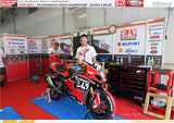 一代名宿世界冠軍車手史雲斯再次代表吉川車隊參賽,Gary和他合照時老友鬼鬼。