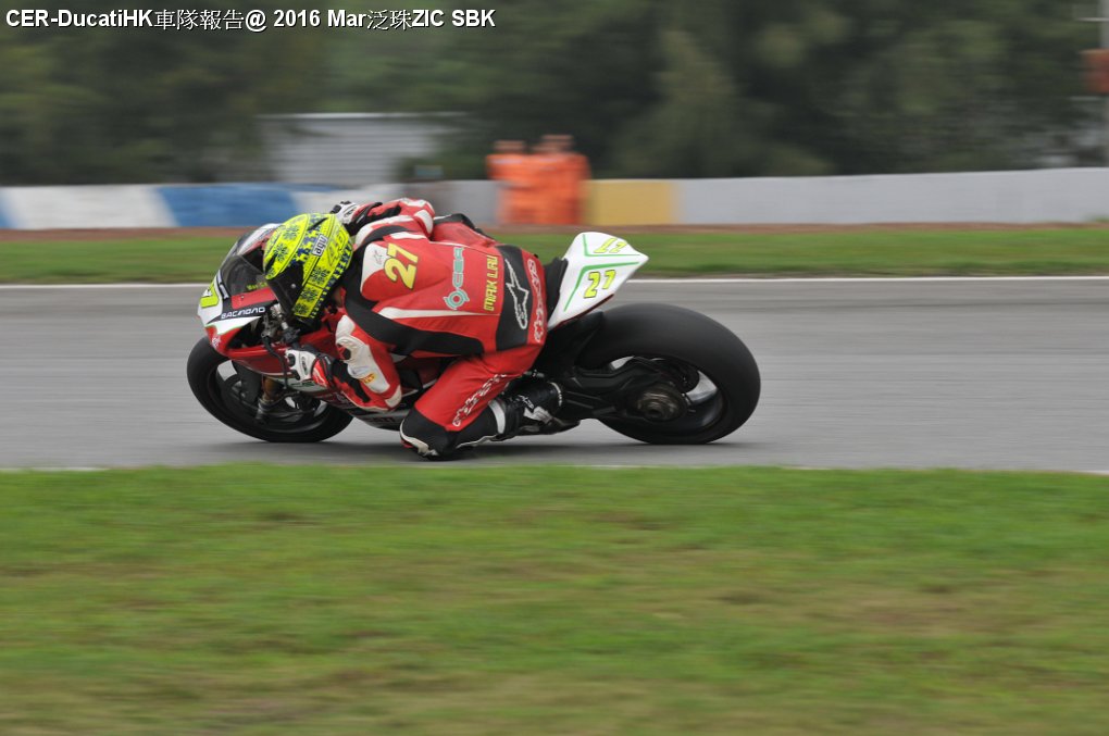 車手李溢新: 「好榮幸可以和師父Simon, 隊友Max 代表CER Ducati HK Racing Team參加2016泛珠三角ZIC Superbike賽事,今季駕駛Ducati 1299s 出戰,天氣不是好穩定,賽道的變化亦很大,對我和車都有難度和挑戰,但可以順利完成今季比賽也感到好高興。」