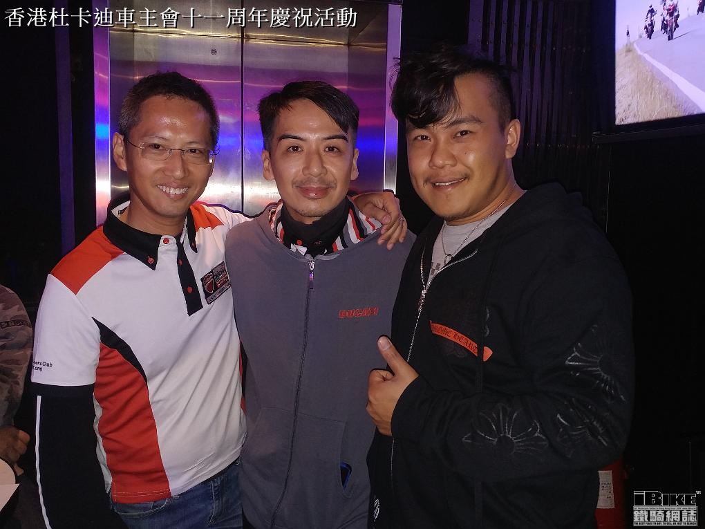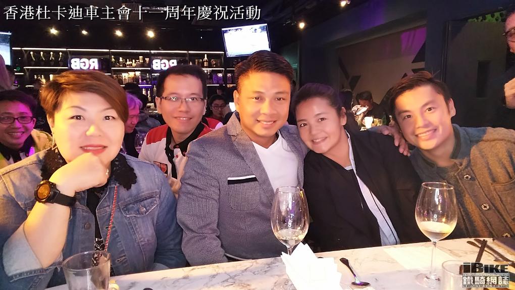 | 重頭戲是十一週晚宴及唱歌表演,晚宴期間車會各要員新會長:Benny Yuen,副會長:Dickson Yeung 舊會長:Man Yau ,舊副會長:Wilson Sit, Raymond Siu也在發表演說,及進行會務會議。再此預祝香港杜卡迪車主會活躍程度蒸蒸日上,越辦越精彩。 |