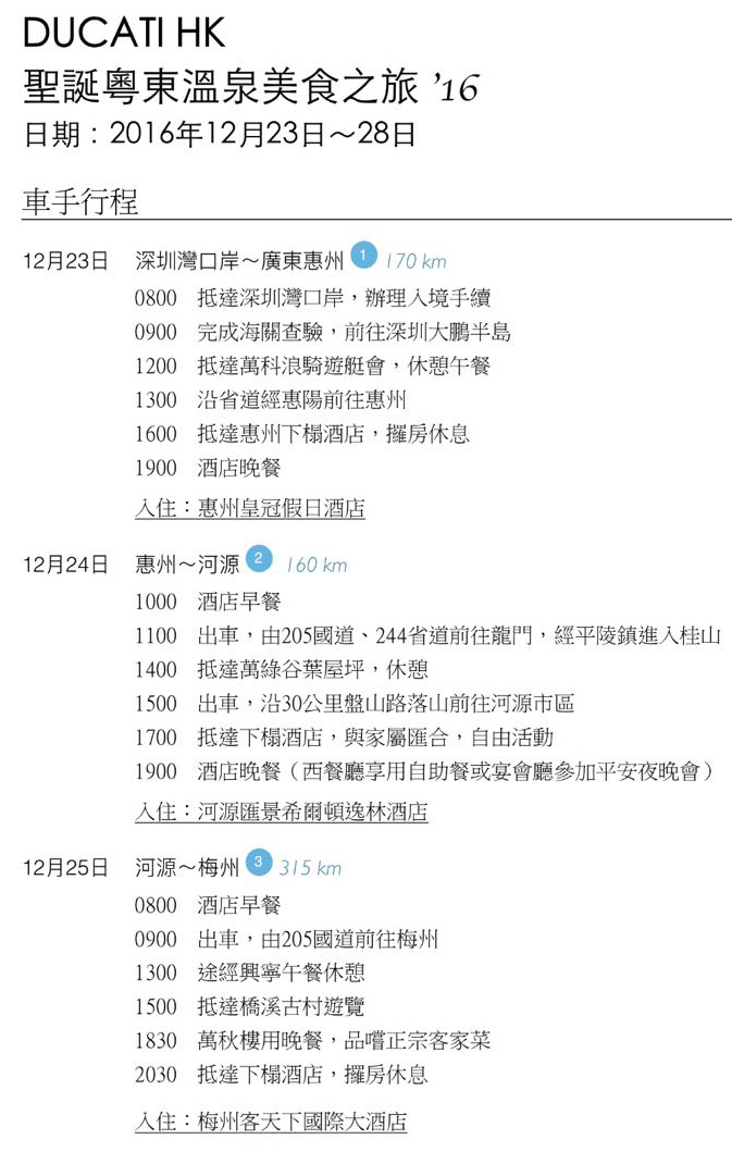 DUCATI HK 聖誕粵東溫泉美食之旅 2016