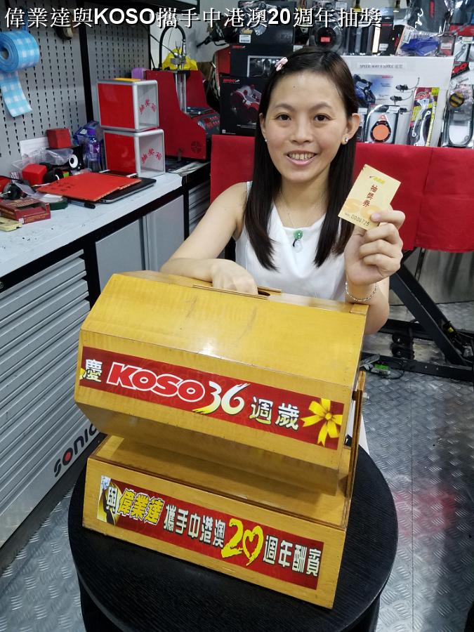 澳門偉業達貿易有限公司與KOSO攜手開拓中港澳市場已踏入二十個年頭。趁著合作20週年和KOSO三十六週歲的機遇,偉業達舉辦了攜手中港澳二十週年大抽獎。