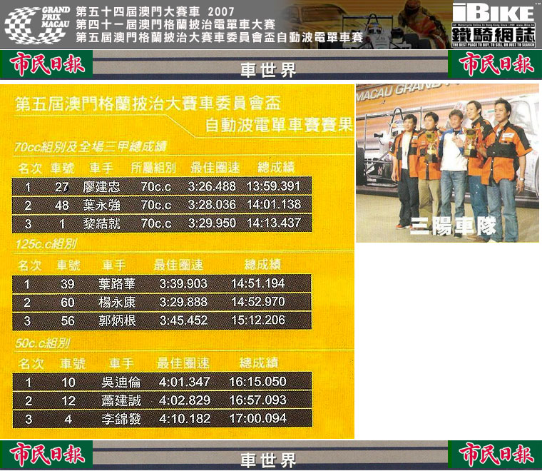 16 - 20 Nov 2007 第五十四屆澳門格蘭披治大賽車 - 趣味花邊